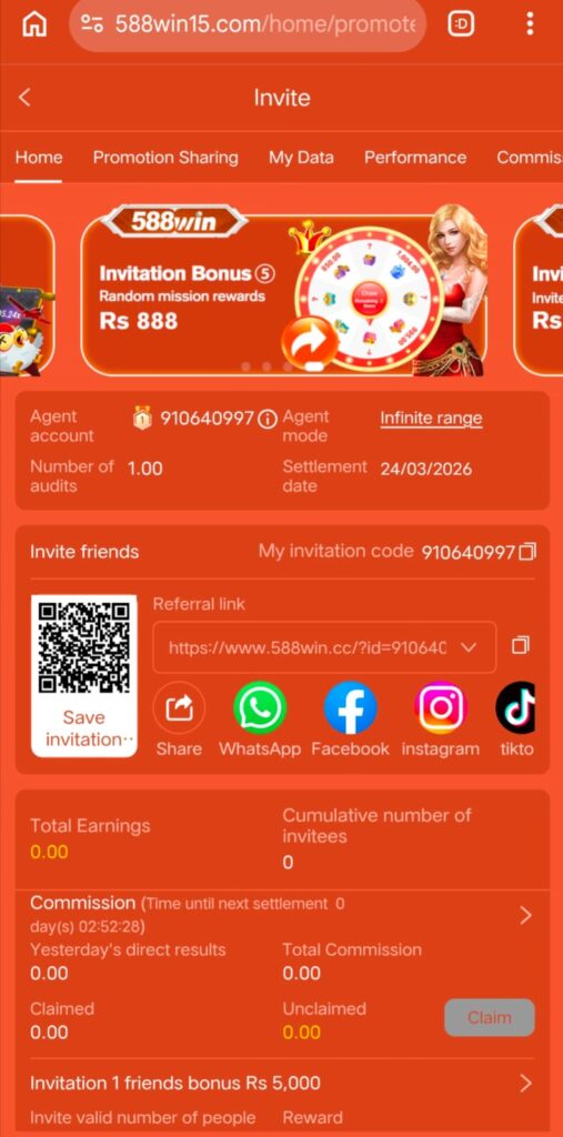 588WIN is not just about playing games; it also includes social features. Players can interact with others, share referral links, and participate in community events.