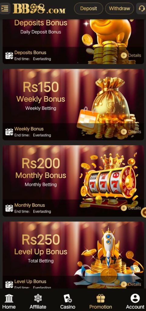 One of the biggest advantages of the BB98 Game is its fast withdrawal system. Users can transfer their earnings quickly using secure payment methods.
