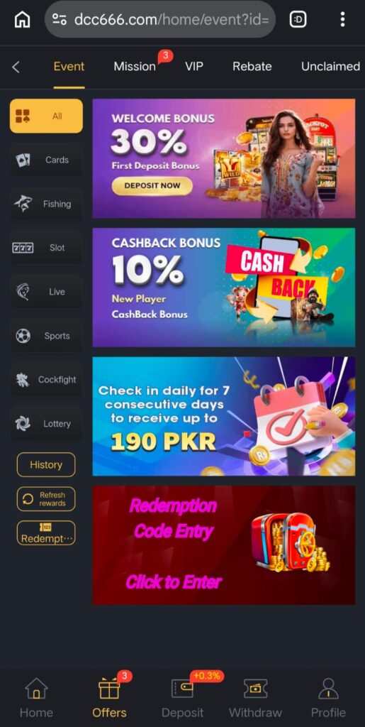 In terms of UX, this platform does a great job of keeping users engaged. Notifications for rewards, bonuses, and promotions appear at the right time without being overwhelming. Overall, the app feels well-optimized for Android devices in Pakistan.