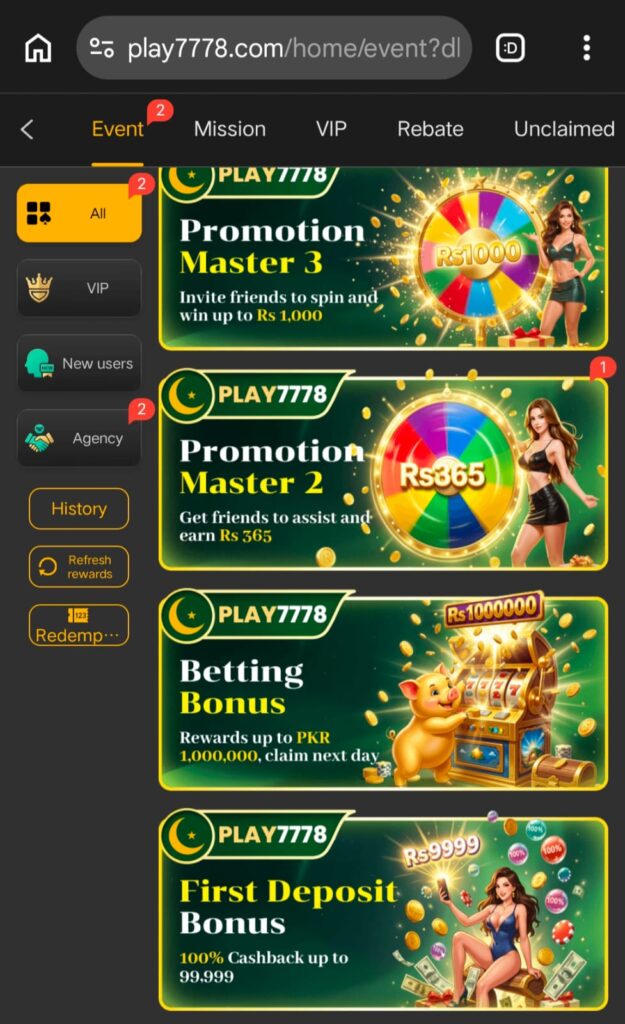 The PLAY7778 Game offers a comprehensive rewards system that enhances its appeal as an Earning App Pakistan.