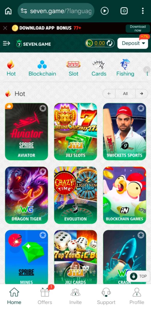 In my opinion, the SEVEN Game app is designed mainly for entertainment. The platform offers a variety of simple games that can keep users engaged for a long time. The interface is clean, and beginners can easily understand how the games work. In addition, the registration process is quick, which makes it convenient for new users.